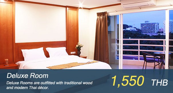Phu View Talay rooms are styled in a simplistic modern Euro-Thai theme that runs concurrent throughout the hotel.
